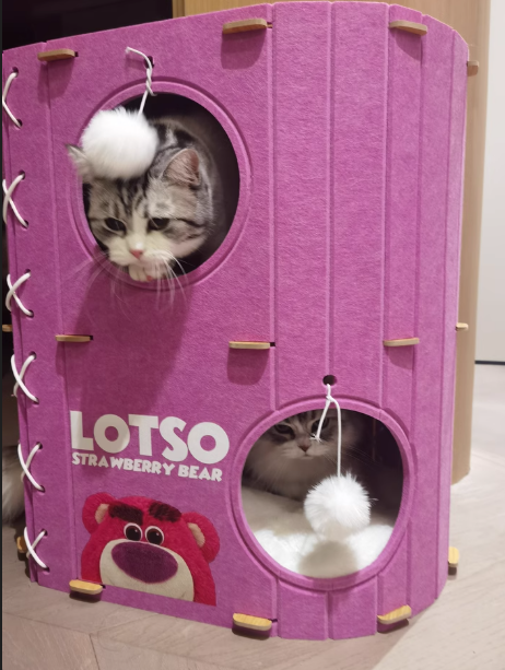 The second I set it up, my cat jumped right in and claimed it. The strawberry bear design is too cute, and I love that it also works as a scratching pad. Great quality, worth every penny!